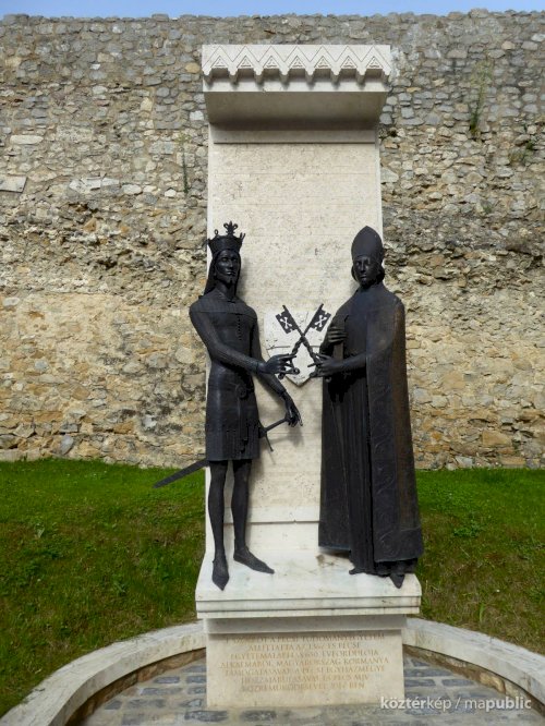 Nagy Lajos király és Vilmos középkori pécsi püspök szoborkompozíciója (