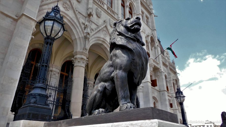 Országház főbejáratát őrző oroszlán (