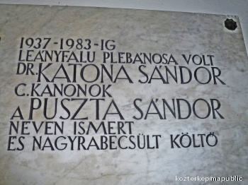Katona Sándor c. kanonok emléktáblája (