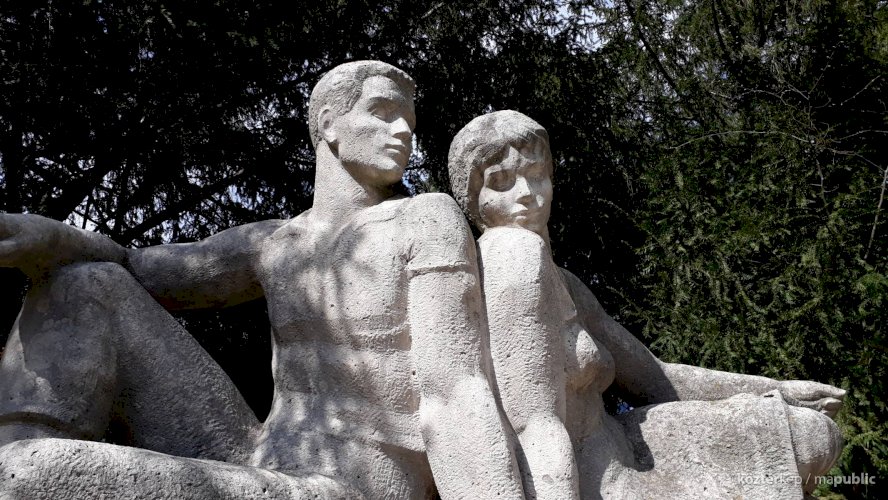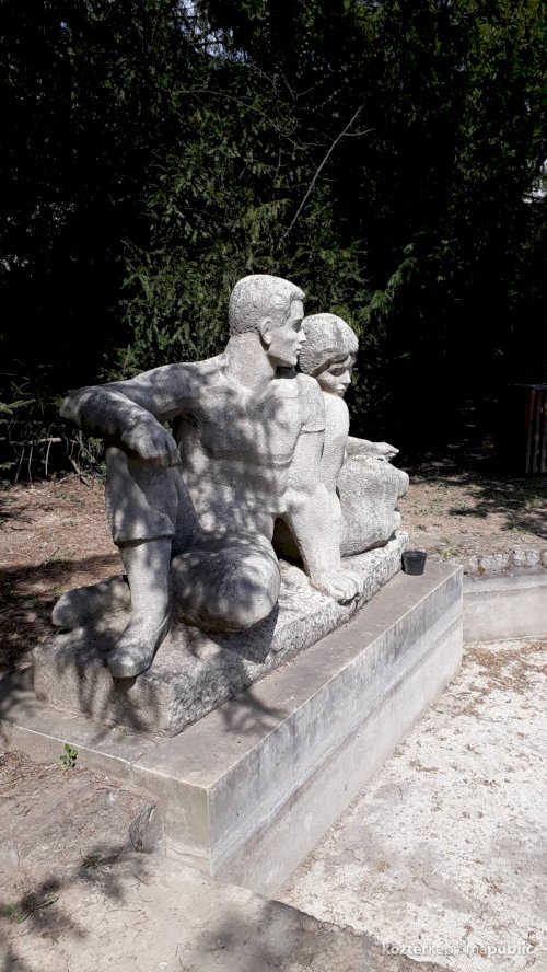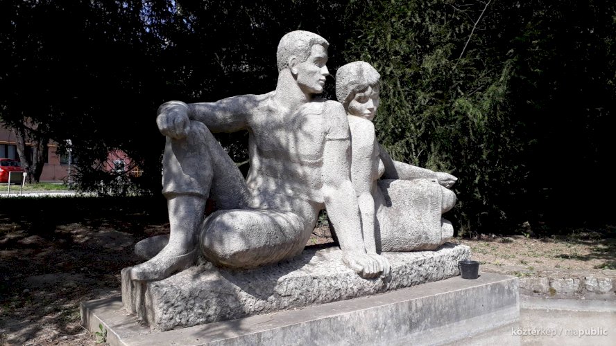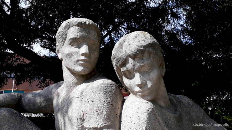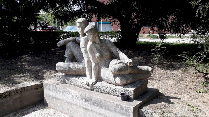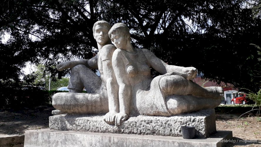 Kétfigurás parkdíszítő-szobor (