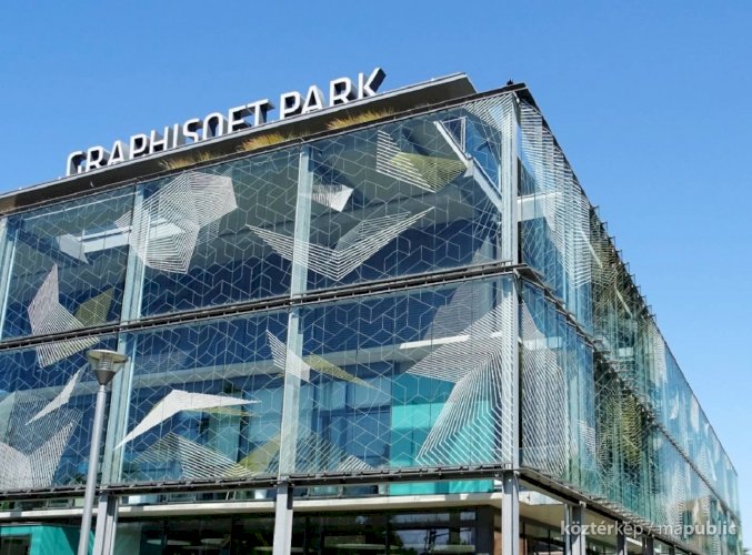 A Graphisoft Park fogadóépülete üvegburkolata (