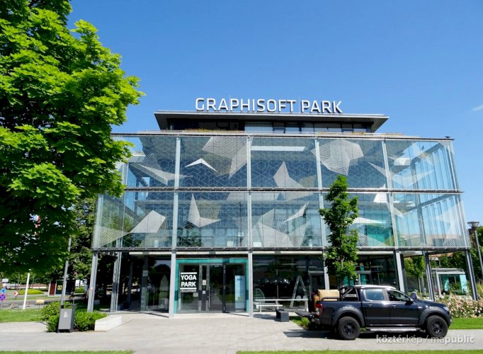 A Graphisoft Park fogadóépülete üvegburkolata (
