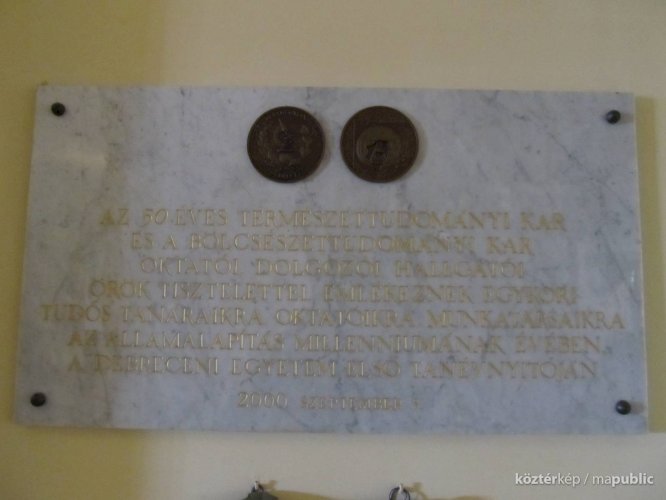 Az 50 éves Természettudományi Kar és Bölcsészettudományi Kar emléktáblája (